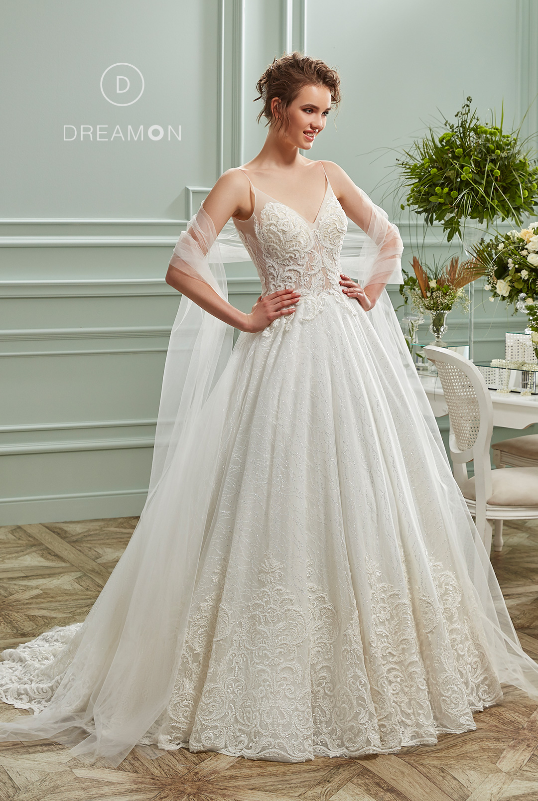 İnce İp Askılı, Pelerin Detaylı, A Kesim Gelinlik Modeli